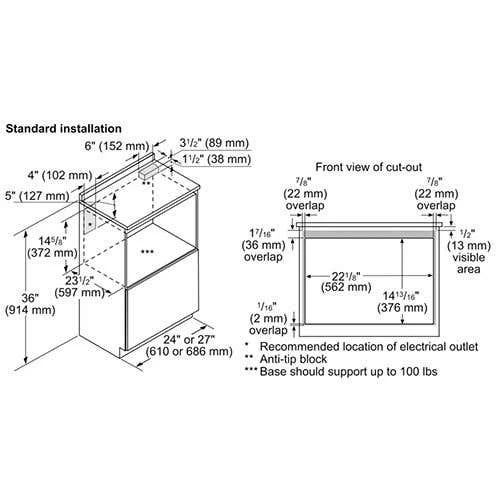Bosch 800 Series 24″ Built-In Microwave featuring an Automatic Sensor Programs simplify cooking for great results. Also features a 34L cavity capacity, as well as a Stainless Steel finish and glass touch controls with LCD White display.