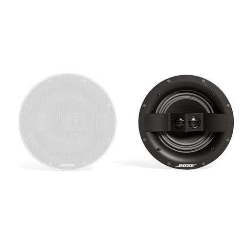 These round Virtually Invisible® in-ceiling speakers are engineered with one 18 cm woofer and two strategically positioned 2.5 cm tweeters each, eliminating the need to aim the speakers into the room. Exclusive Bose® Stereo Everywhere™ speaker performance provides balanced stereo sound over a wider area, with no drop-offs. Sold as a pair.