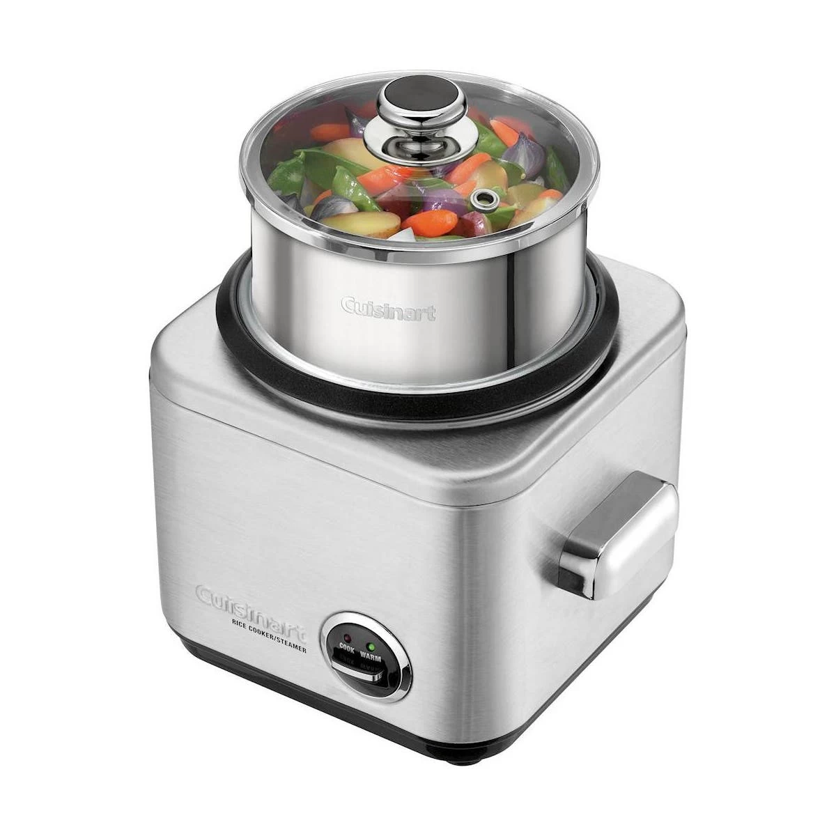Now making the perfect rice dish is easy with the new brushed stainless Cuisinart Rice Cooker. Its steam vent helps to prevent splattering, while its chrome-plated handles stay cool to the touch. Use the built-in tray to steam other foods while the rice is cooking; when you’re done, the non-stick coating and durable construction make cleanup a breeze.