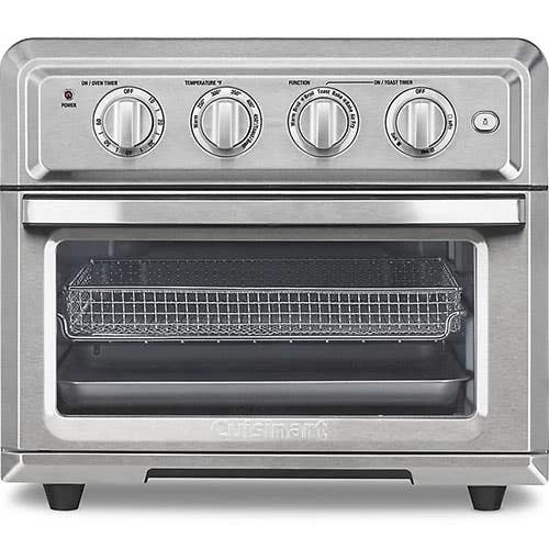 Introducing a healthier way to fry, and so much more! The Cuisinart AirFryer Toaster Oven is a premium full-size toaster oven with a built-in air fryer. That means it not only bakes, broils, and toasts, it also lets you air-fry right inside the oven. Best of all, a large, 4-pound chicken requires only about a teaspoon of oil to fry! Air frying, which uses powerful ultra-hot air, is a healthier way to prepare delicious fried favourites, from wings to fritters to fries to shrimp. And since toaster ovens stay on the countertop, this fryer doesn’t have to move back and forth, from cupboard to counter. Enjoy the crunch without the calories and messy cleanup, with the AirFryer Toaster Oven from Cuisinart!