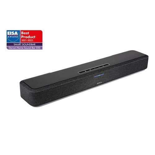 The Denon Home Sound Bar 550’s compact 26″ footprint saves space without sacrificing performance. The clean. simple industrial design makes it suitable for any room.