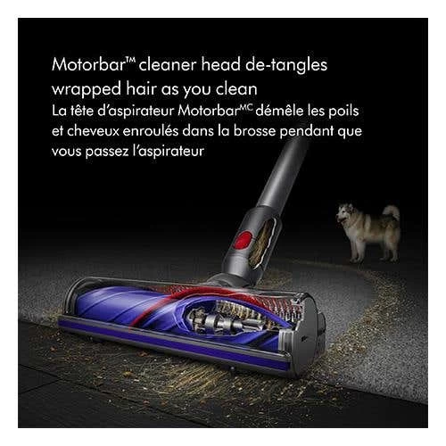 - Motorbarâ„¢ cleaner head deep cleans carpets and hard floors, de-tangling wrapped hair as you clean