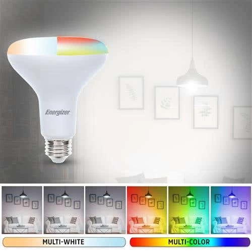 The Energizer Connect Smart BR30 LED Multi-Color & Multi-White RGB Light Bulb offers over 16 million color options. Control this bulb straight from your smartphone or tablet using the free Energizer Connect app on the Apple App Store or Google Play Store. Use the grouping function to control multiple bulbs simultaneously or create schedules to have the bulbs turn on or off at specific times. This device utilizes your current WiFi network, so there is no need to install extra wires or hubs. Our Smart LED Bulb is equivalent to a 60W using only 11W.