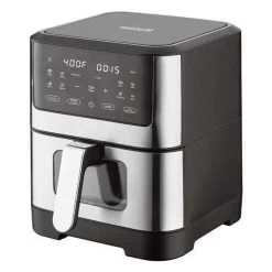 The Frigidaire 1.7 Litre Digital Air Fryer is a healthy alternative to deep frying, with 80% less fat. It features a dishwasher safe basket sized for up to 3 people, Simple and easy-to-use mechanical timer and a built-in system to filter smoke.