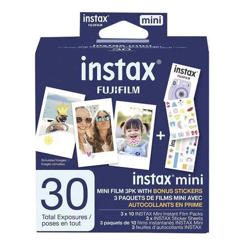 The INSTAX Mini Film is for all INSTAX Mini cameras and the Instax Mini Film 3pk contains 30 exposures of the classic Instax white-border film plus bonus sticker sheets. It offers stunning instant pictures that you can fit into a purse, wallet or mini photo frame. INSTAX film ensures sharp, clear reproduction, vivid colors and natural skin tones. Highly stable, the new emulsion performs at temperatures as low as 5°C and as high as 40°C.
