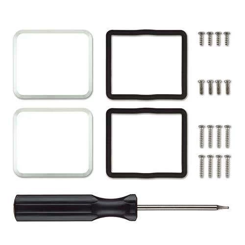 The kit includes two lenses and seals, screws, and a screw driver. It works with the Dive and Wrist housings.