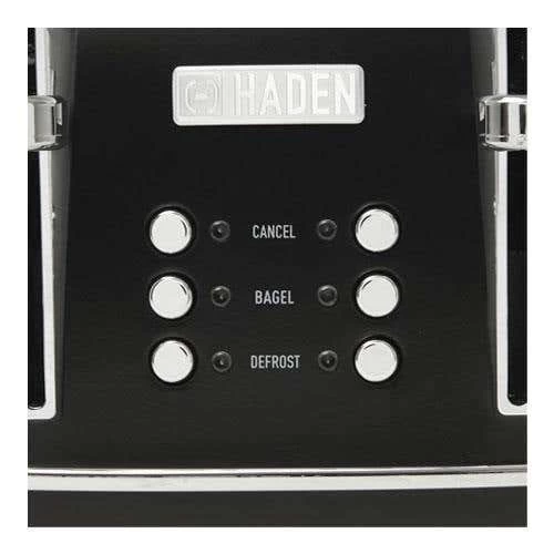 Brighten up your morning routine and upgrade your kitchen counter with the Haden Heritage 4 Slice Black & Chrome Toaster. This retro-chic product features multiple settings to ensure that your toasts or bagels are browned exactly to your liking, this product has a cancel setting that lets you stop the toasting cycle midway. A self-centering function automatically centers bread for a perfect result.