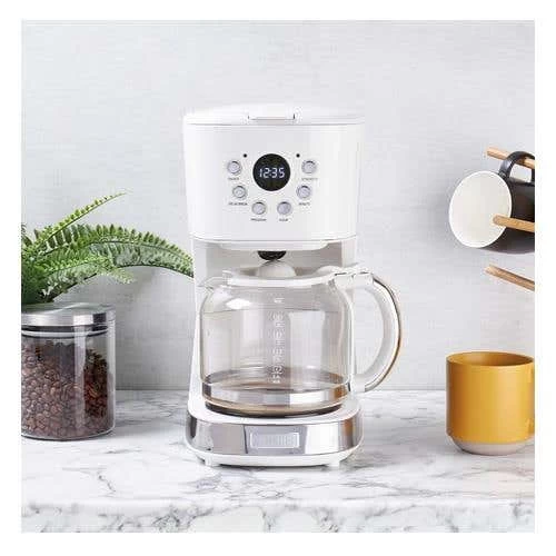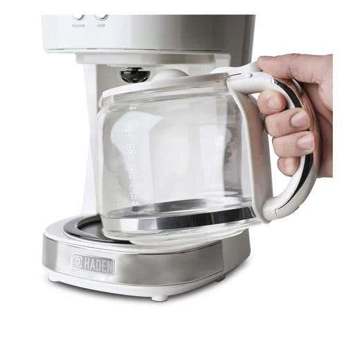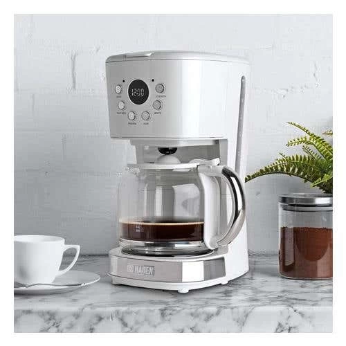 Produce the perfect cup of coffee with ease and style with the Haden filter coffee maker. The elegant Ivory colour will add a touch of class to any kitchen. This coffee maker has six functions including on/off, delay brew, program, hour, minute, and strength. It also has an LCD display and a thirty-second anti-drip feature. The 1.5-litre/12 cup glass carafe and funnel are also dishwasher-safe for added convenience. This coffee maker also has a keep warm feature, so if one cup isn’t enough you can simply pop back and pour yourself another cup! Perfectly matches our Dorset and Cotswold Ivory collections.