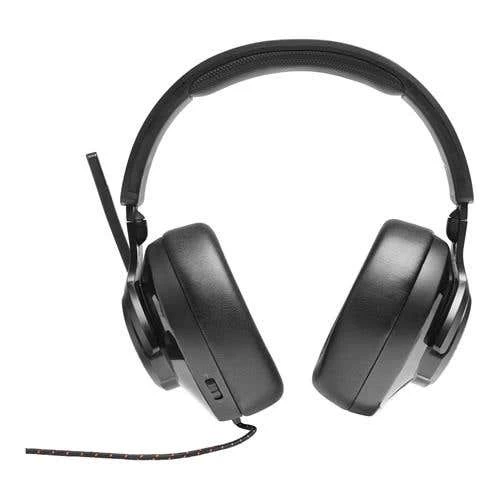 Sound is Survival. Step up your game with superior audio. JBL Quantum 300 wired headset creates a new level of immersion thanks to JBL QuantumSOUND Signature and accurate audio positioning. JBL QuantumSURROUND™ generates a realistic soundscape that drops you in the middle of the action, gives you an edge, and maximizes your performance on your PC. Designed for durability, the lightweight headband and memory-foam ear cushions keep you comfortable. A flip-up, voice focus boom mic keeps the communication flowing with both allies and enemies.