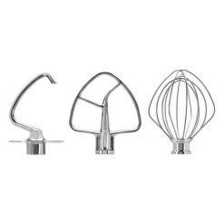 This Stainless Steel 3 Piece Kit includes a dough hook, flat beater and wire whip for all of your mixing tasks.