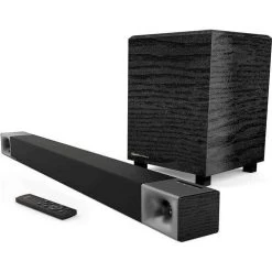 The Cinema 400 comes with a wireless 8″ subwoofer that you can place anywhere in your room. Wireless 2.4 GHz technology automatically connects the sound bar and the subwoofer together. There is also a subwoofer output meaning you can add a second subwoofer to your setup or simply replace the included wireless subwoofer with the subwoofer of your choice.