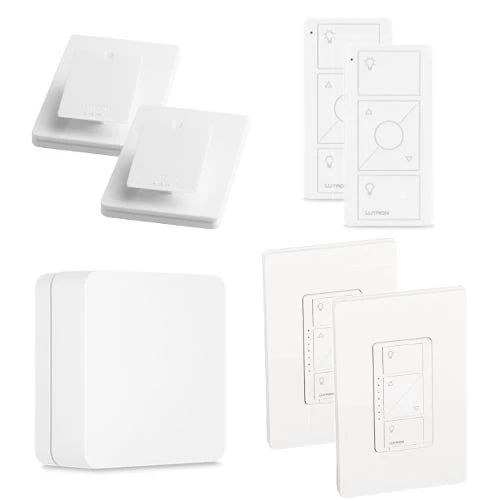 The Lutron Caséta Smart Bridge and free app makes it remarkably easy for you to set up, control and monitor Caséta Wireless dimmers and Serena Remote Controlled Shades from your iPhone, iPad or even your Apple Watch. This kit provides everything you need, including the Caséta Wireless Smart Bridge, Caséta Wireless in-wall light dimmers, and Pico remote controls. For maximum convenience the Caséta bridge also works with Apple HomeKit-enabled products, Nest, select Honeywell Thermostats, Logitech Harmony remotes and more.