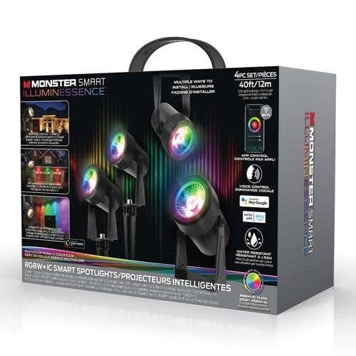 When it comes to your outdoor lighting, making your home look it’s best is essential. With the Monster Smart Illuminessence 4-Piece Smart Spotlight Outdoor Yard Light, you can transform the way your residence looks forever. You’ll have multi-color and dimmable LED light effects that are easily modifiable. Download our Monster Smart App and you can make custom changes on your phone anytime anywhere. Have standard lighting to illuminate your home or take advantage during the holidays.