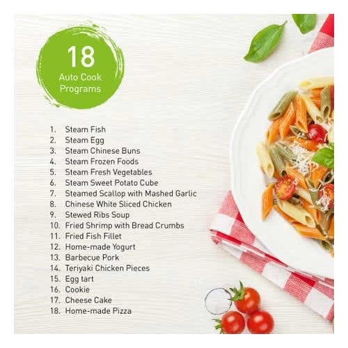 Auto cooking menu allows you to enjoy many of your favorite dishes.