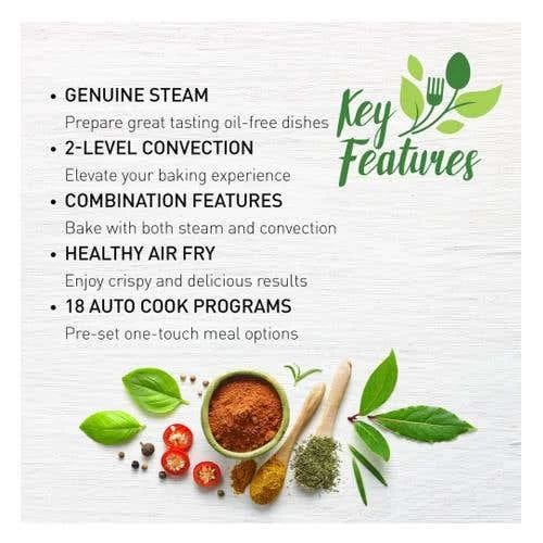 A variety of methods with powerful steam and 2-level convection cooking bring delicious dishes to your home.