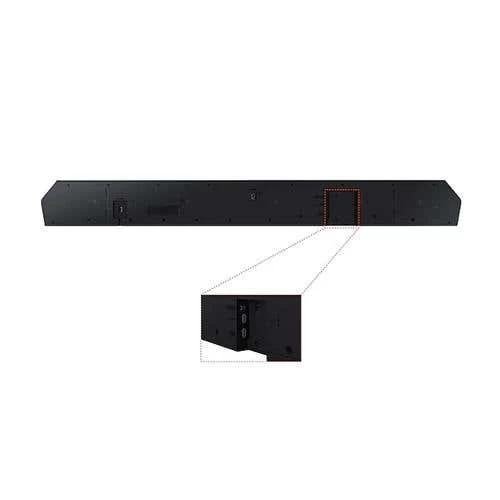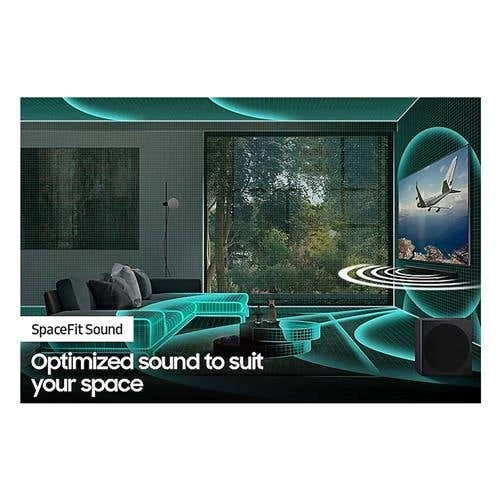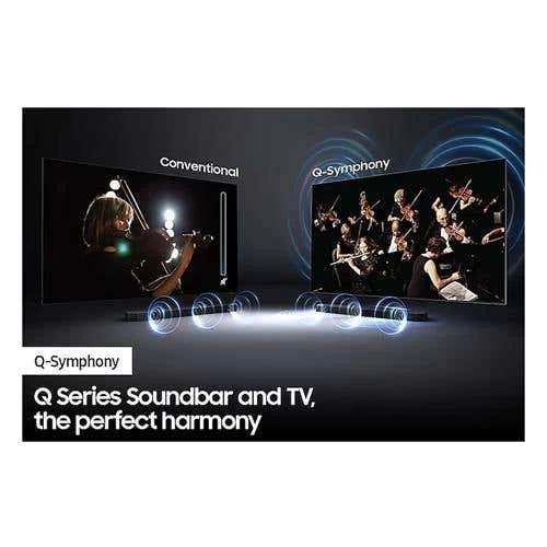 This Soundbar syncs with your Samsung TV, together creating immersive sound. It combines and enhances sound through the soundbar’s front, side, and up-firing speakers as well as the TV’s speakers, giving you a new level of acoustic immersion so you can experience content like never before.