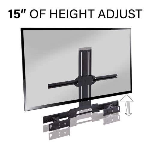- Up to 15″ of height adjust ensures a snug fit under your mounted TV for a clean, sleek look