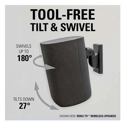 With up to 27º of tilt and 180º of swivel, effortlessly adjust speaker position after installation to achieve the perfect listening angle. The Universal Speaker Wall Mount is ideal for ambient listening and use with voice-controlled smart speakers.