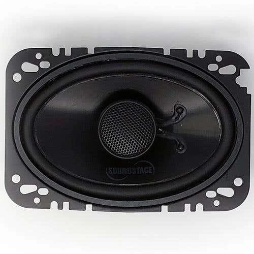 The Soundstage 4 x 6″ Two-Way Coaxial Speakers featuring 60 Watts RMS power, Polypropylene cone composition, and Nitrile Butadiene Rubber surround.